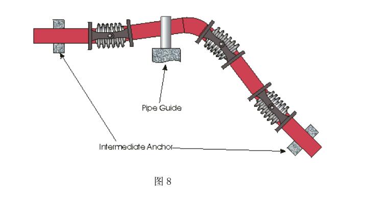 3) FIG. 8 is an example of using hinged expansion joint when bend Angle is not equal to 90°.