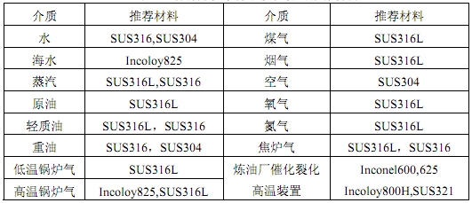 管道补偿器通常选用SUS316L、SUS304不锈钢,当温度大于600℃,则多用镍基合金、钴基合金,但其物价很高。300系列不锈钢也可用于高温环境,如SUS316、SUS316L可用于450~600℃,SUS321可用于450~650℃,对高温腐蚀环境可选用Incoloy800H、825或Inconel600、625。