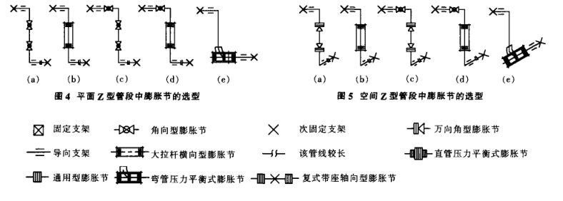 Z型管段中膨胀节的选型与平面Z型管段相似,