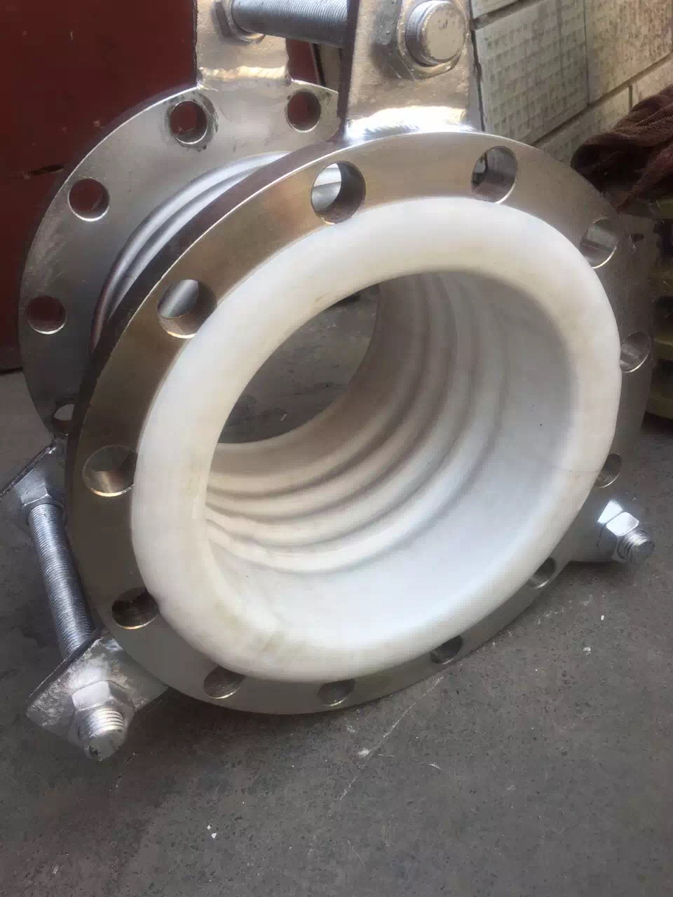 衬四氟补偿器可根据用户的特殊要求(耐腐蚀、耐高温等)设计,多用于化工,医药,食品等行业的管路系统的补偿作用,且具有防腐作用。