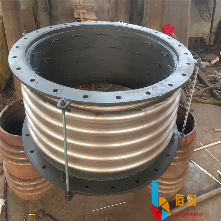 轴向内压式波纹管由一个波纹管和两个端管构成及其它部件组成。它通过波纹管的柔性变形来吸收管线轴向位移(也有小量的横向、角向位移),端接管或直接与管道焊接,或焊上法兰再与管道法兰联结。波纹管上的小拉杆主要是运输过程中的刚性支承或作为产品预变形调整用,它不是承力杆。该类波纹管结构简单、价格低,因而凡是在管线上可能的地方应优先予以考虑。