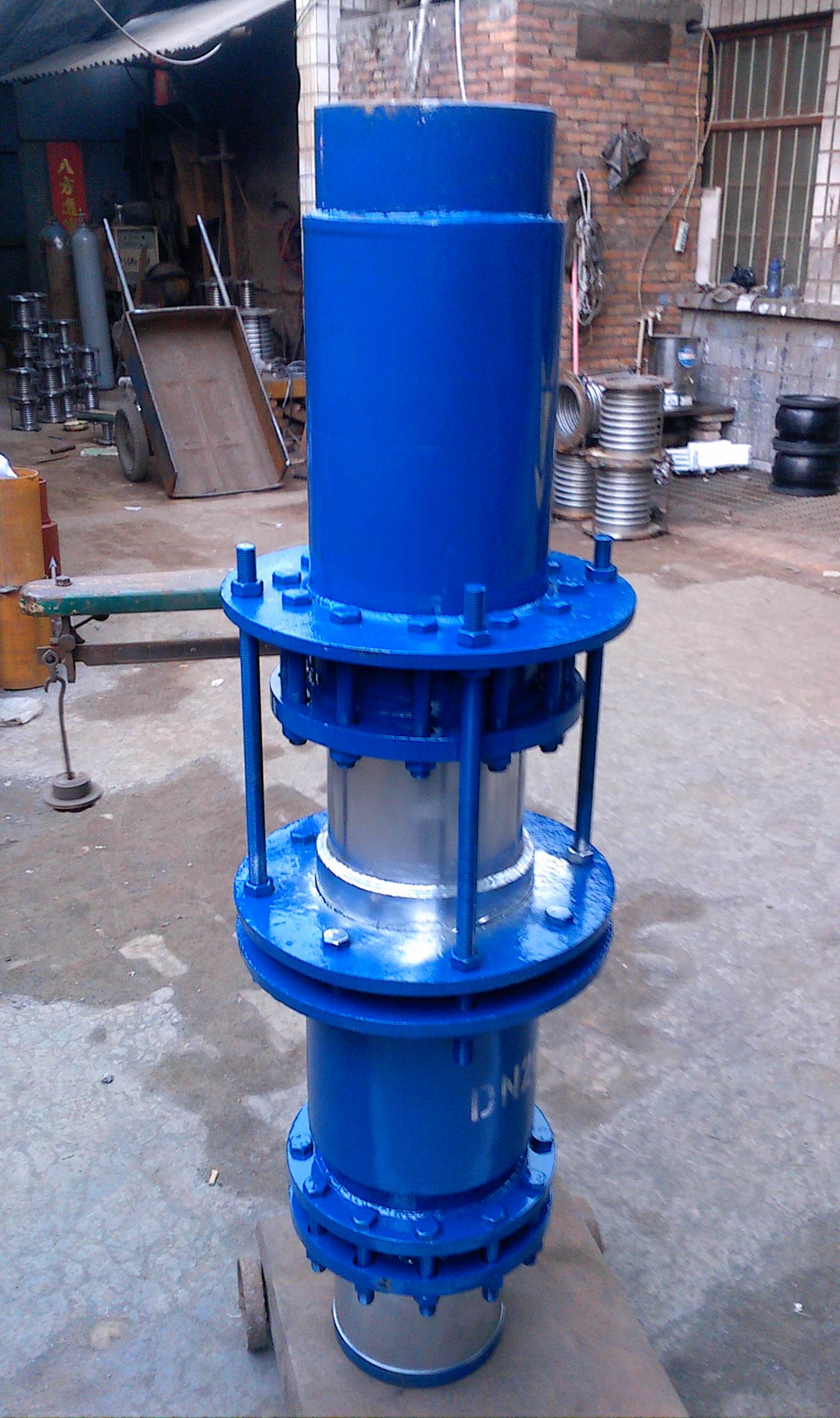 双向无推力套筒补偿器的特点是不论介质从补偿器何端流入,其补偿器两端的滑动套筒总是自由滑动,达到双向补偿作用,增大补偿量。